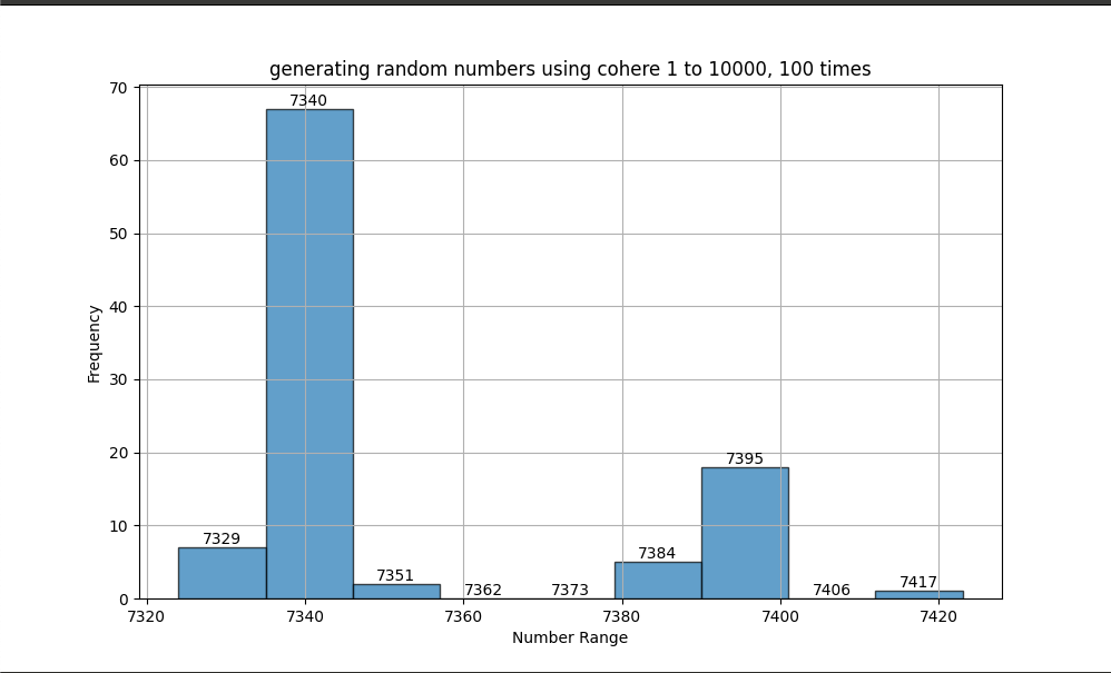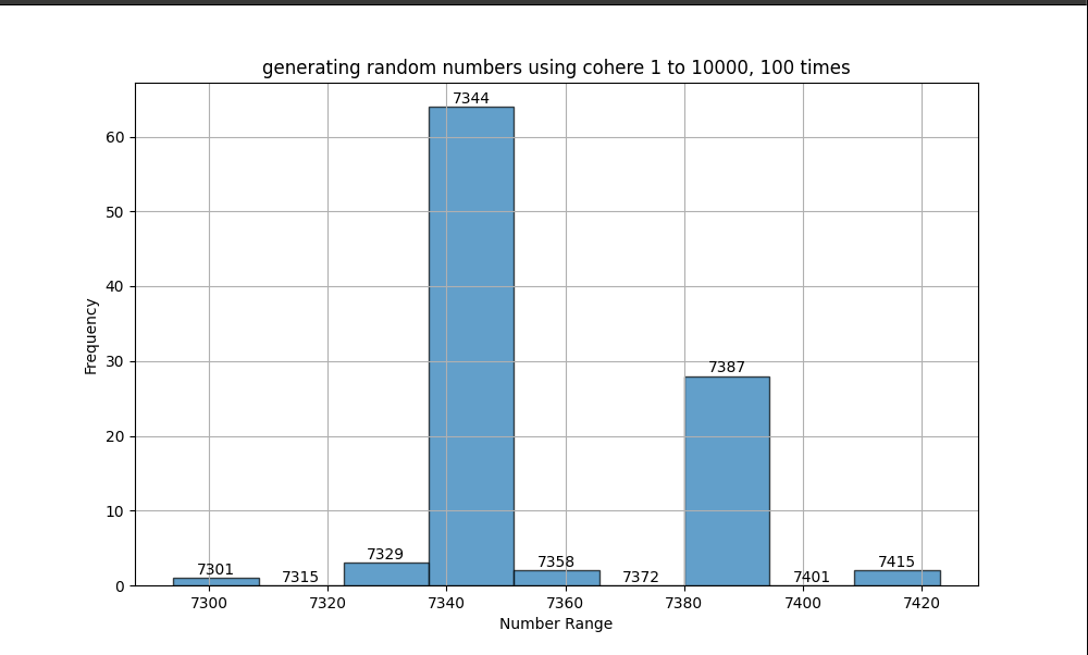 What is funny is that if I run the script again the variation of random number changes but still majority of the numbers are between 7300 - 7400 range.