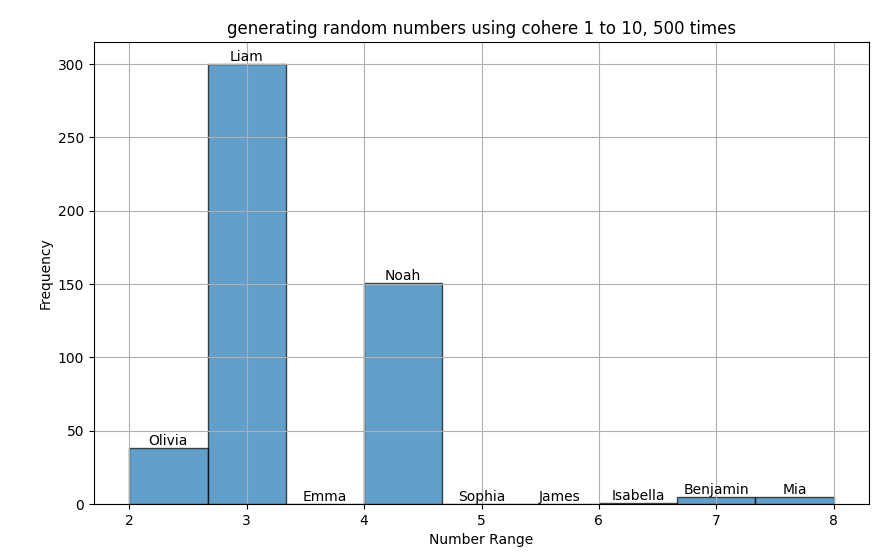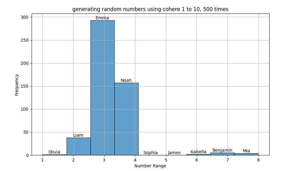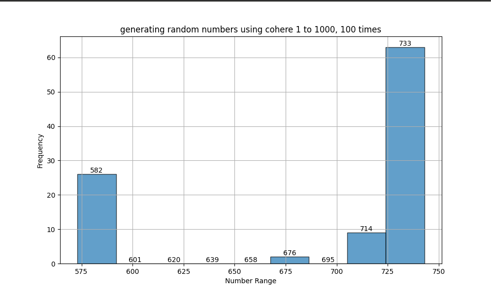 For a random number between 1 to 10000 (Cohere), the model is settling amongst predicting amongst a handful of numbers